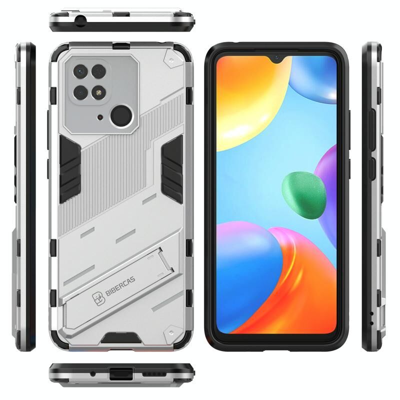 Για Xiaomi Redmi 10C 4G Punk Armor PC + TPU τηλέφωνο υπόθεση με κάτοχο (Λευκό)