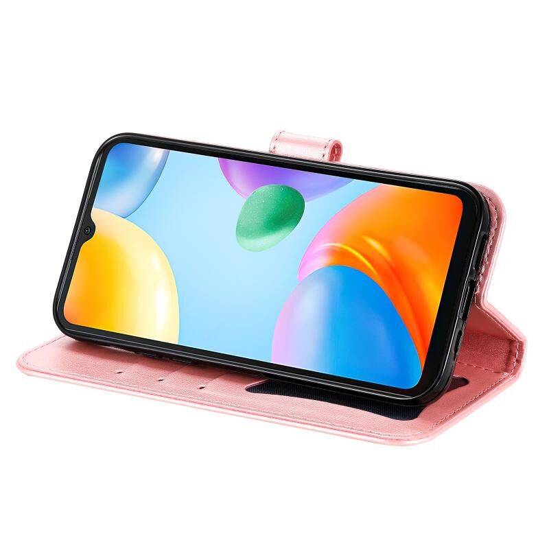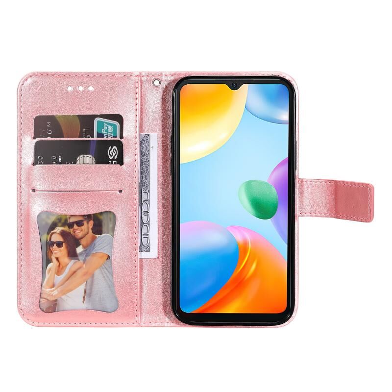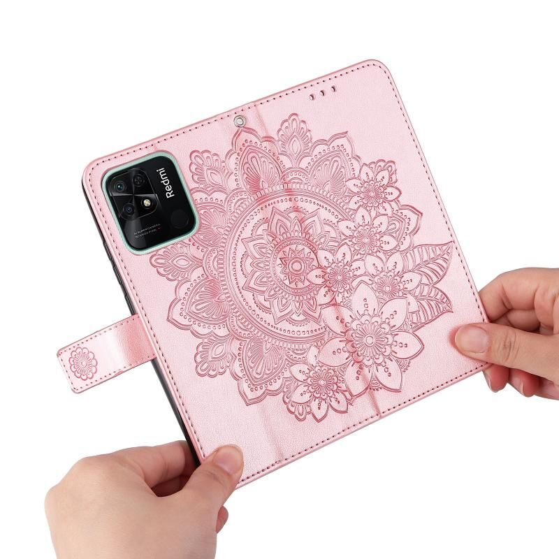 For Xiaomi Redmi 10C 4G / Redmi 10 (India) 7-petal Flowers Embossed Flip Leather Phone Case(Rose Gold)