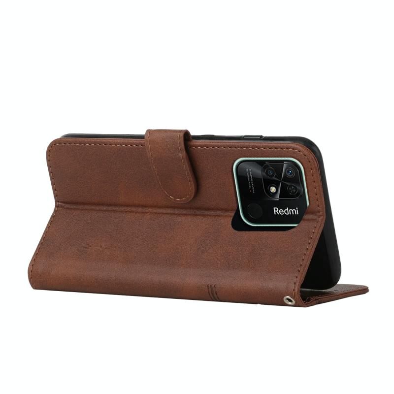 Θήκη τηλεφώνου από δέρμα με υφή μοσχαριού και αγκράφα για Xiaomi Redmi 10C 4G / Redmi 10 (Ινδία) (Κόκκινο)