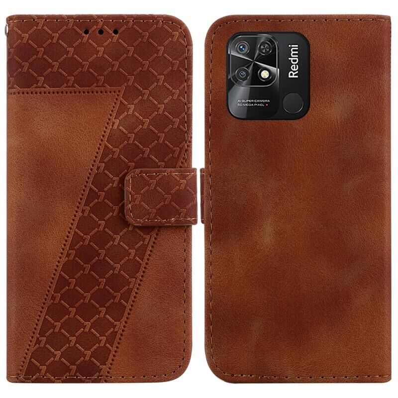 Για Xiaomi Redmi 10C 7-σχήμα ανάγλυφη δερμάτινη θήκη τηλεφώνου (καφέ)