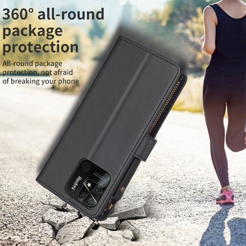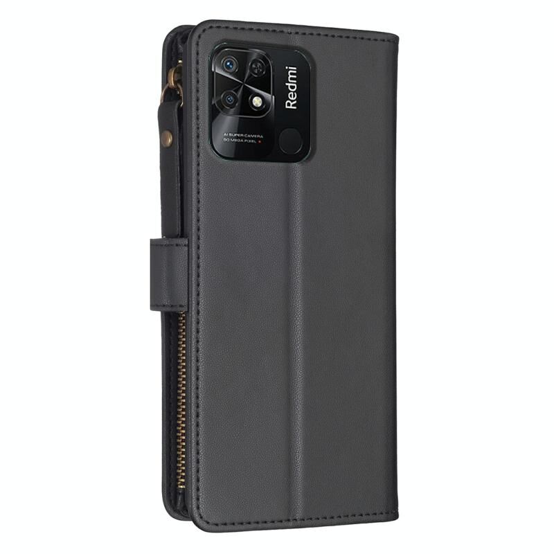 Για Xiaomi Redmi 10C 9 Card Slots φερμουάρ πορτοφόλι δέρμα Flip τηλέφωνο υπόθεση (μαύρο)