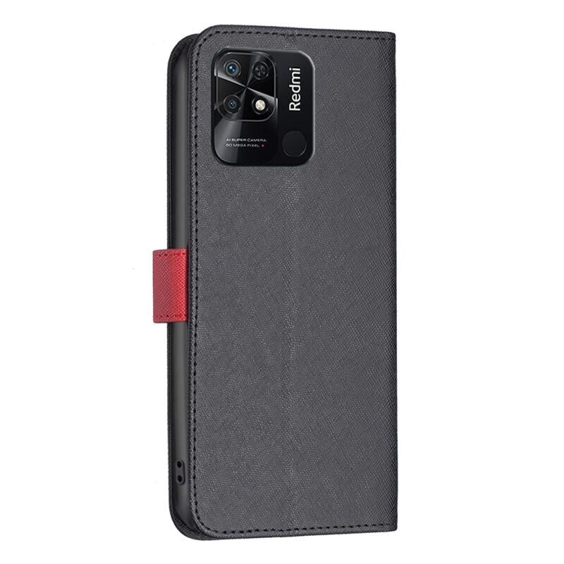 Για Xiaomi Redmi 10C BF13 Χρώμα ταιριάζει με σταυρό υφή δερμάτινη θήκη τηλεφώνου (μαύρο)