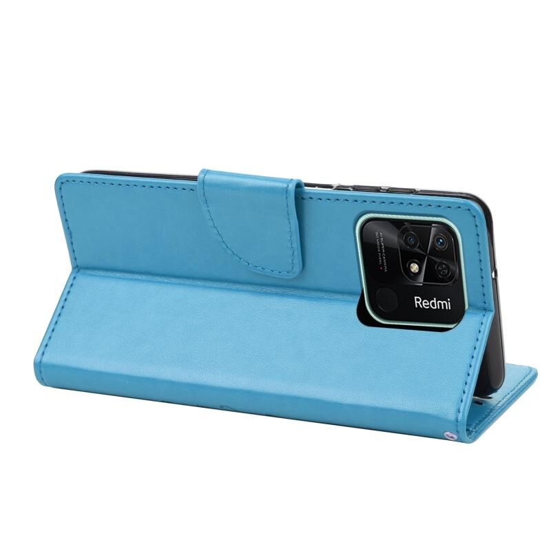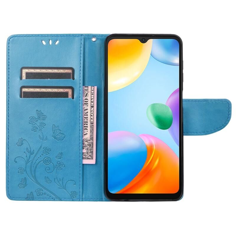 Θήκη τηλεφώνου από δέρμα με σχέδιο πεταλούδας και λουλουδιών για Xiaomi Redmi 10C (Γκρι)