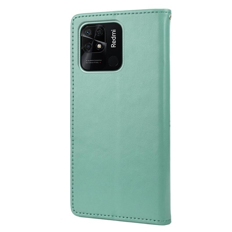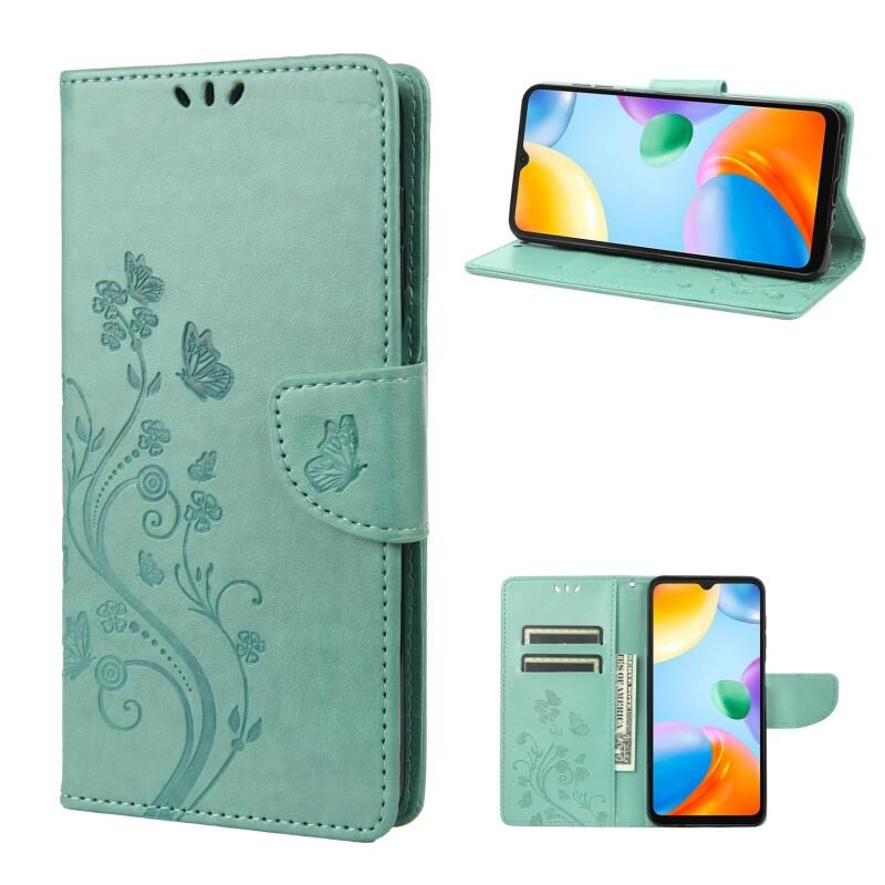 Θήκη τηλεφώνου από δέρμα με σχέδιο πεταλούδας και λουλουδιών για Xiaomi Redmi 10C (Γκρι)