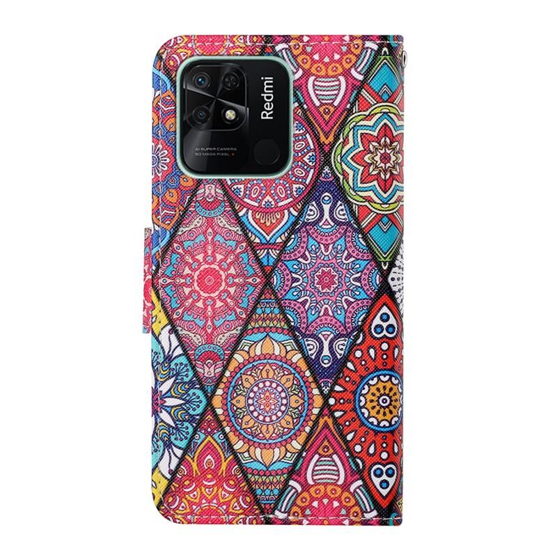Θήκη δέρματος με σχέδιο πολύχρωμης ζωγραφικής και αναδιπλούμενο μηχανισμό για Xiaomi Redmi 10C (Διαμαντένιο Τότεμ)