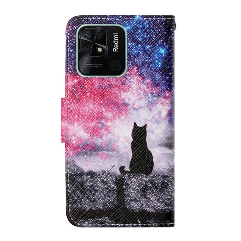For Xiaomi Redmi 10C Colored Drawing Pattern Flip Leather Case(Star Sky Cat)
