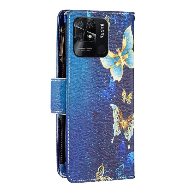 Θήκη τηλεφώνου δερμάτινη με φερμουάρ και πολύχρωμο σχέδιο για Xiaomi Redmi 10C (Μωβ Πεταλούδα)