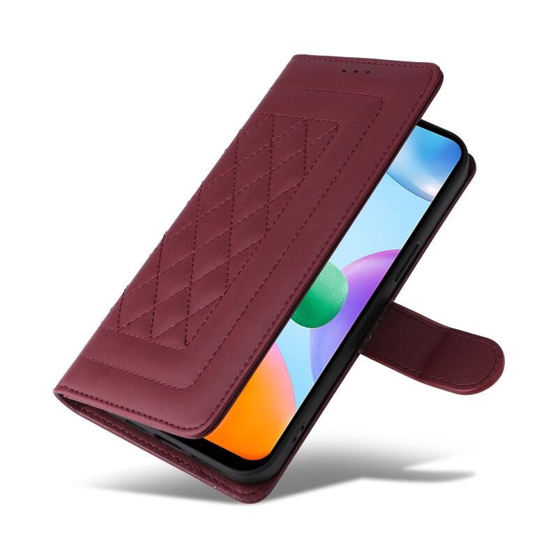 Για Xiaomi Redmi 10C Diamond Lattice δερμάτινη θήκη Flip τηλέφωνο (κόκκινο κρασί)