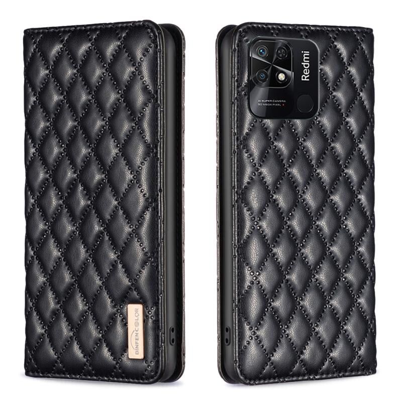 Για Xiaomi Redmi 10C Diamond Lattice μαγνητική δερμάτινη θήκη Flip Phone Case (Μαύρο)