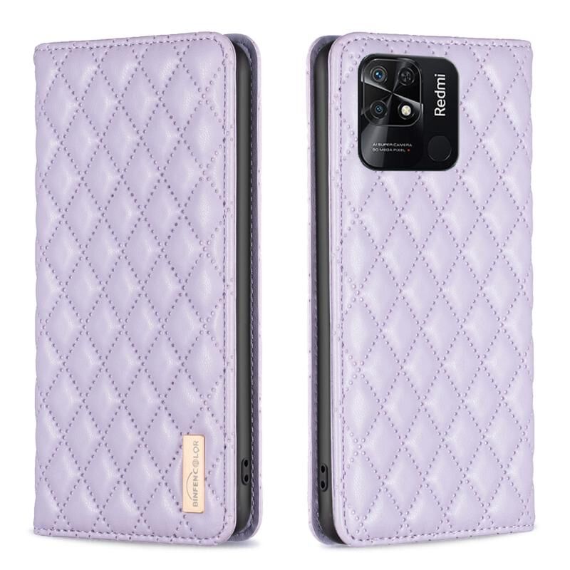 Για Xiaomi Redmi 10C Diamond Lattice μαγνητική δερμάτινη θήκη Flip Phone Case (Μωβ)