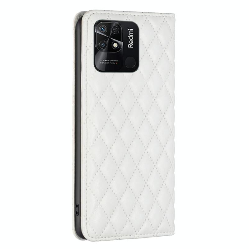 Για Xiaomi Redmi 10C Diamond Lattice Μαγνητική δερμάτινη θήκη Flip Phone Case (Λευκό)
