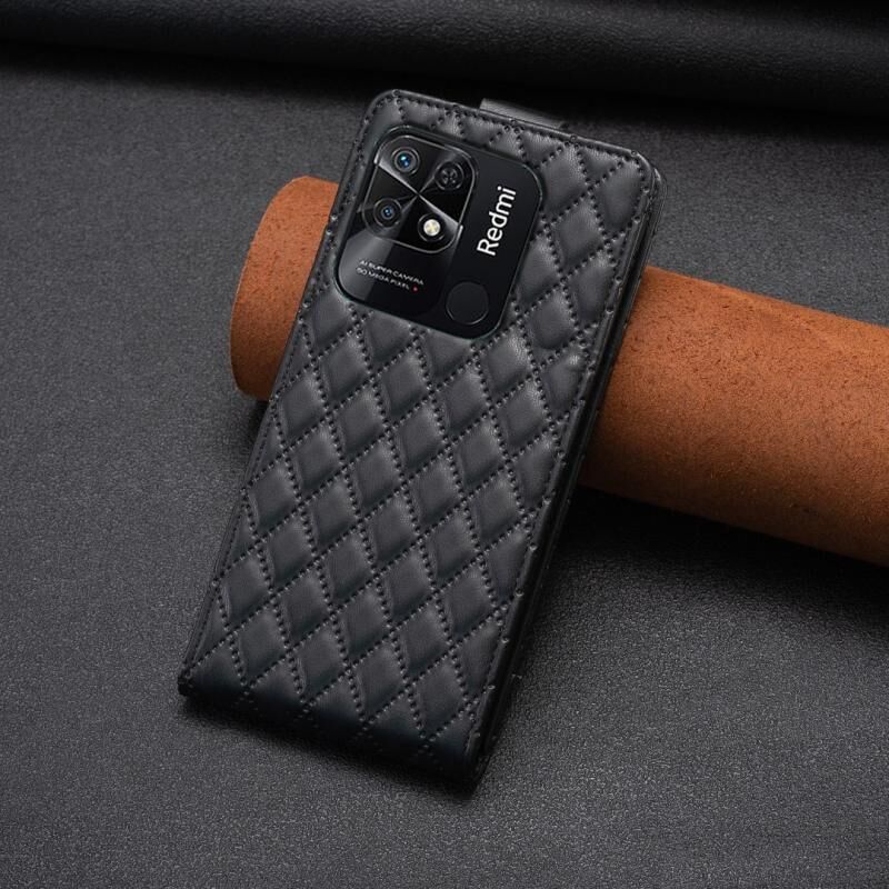 Για Xiaomi Redmi 10C Diamond Lattice Κάθετη Flip δερμάτινη θήκη τηλεφώνου (μαύρο)