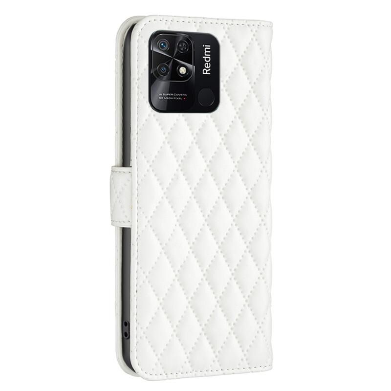 Για Xiaomi Redmi 10C Diamond Lattice πορτοφόλι δέρμα Flip υπόθεση τηλεφώνου (Λευκό)