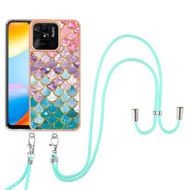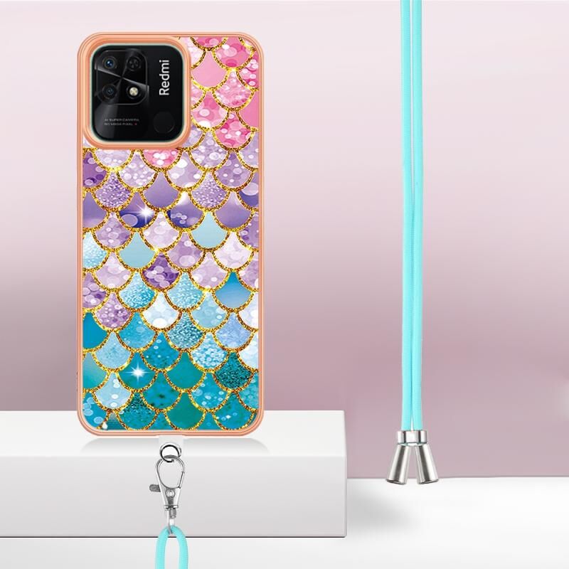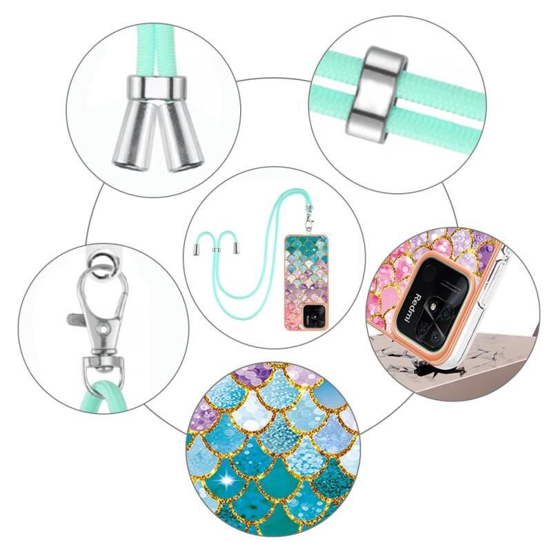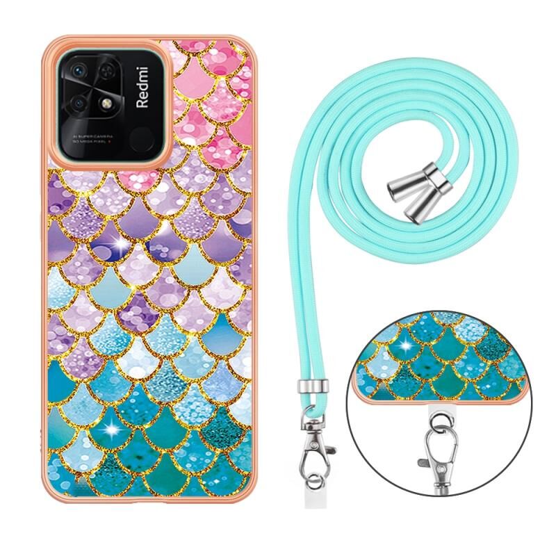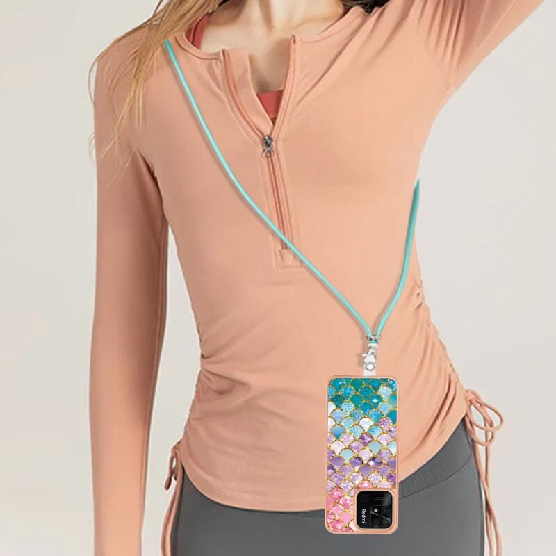 For Xiaomi Redmi 10C Electroplating IMD TPU Phone Case with Lanyard(Colorful Scales)