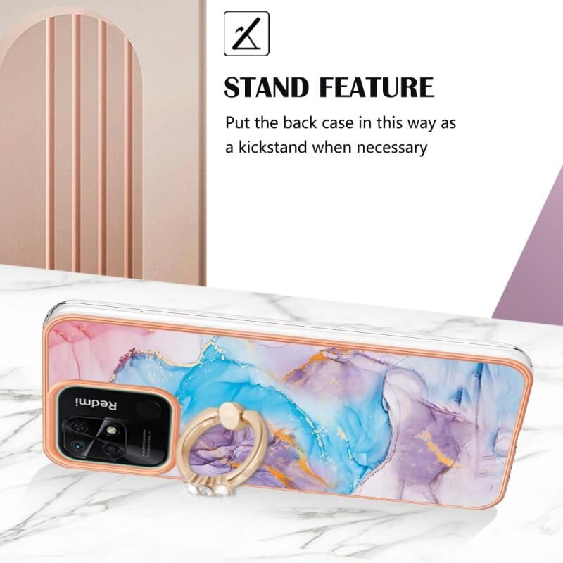 Θήκη τηλεφώνου Xiaomi Redmi 10C με ηλεκτρολυτική επιμετάλλωση IMD TPU με δακτύλιο (Μπλε Μάρμαρο)