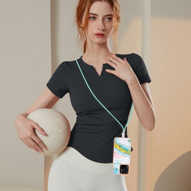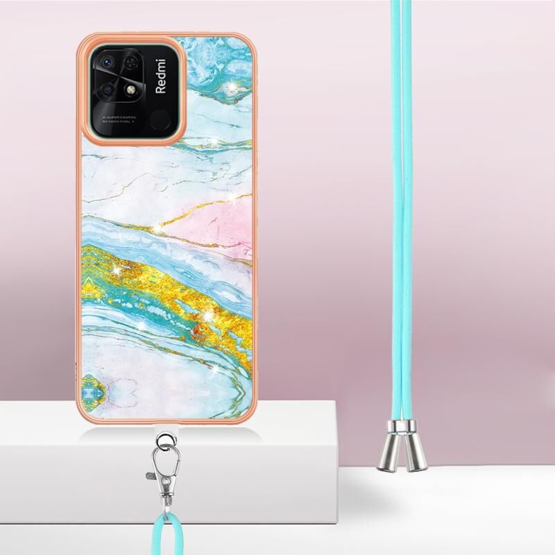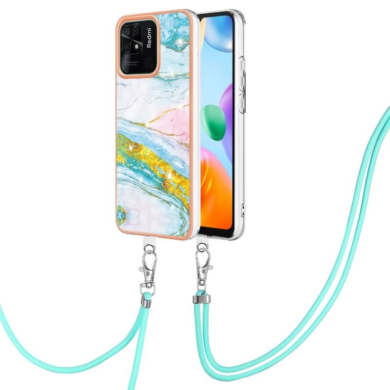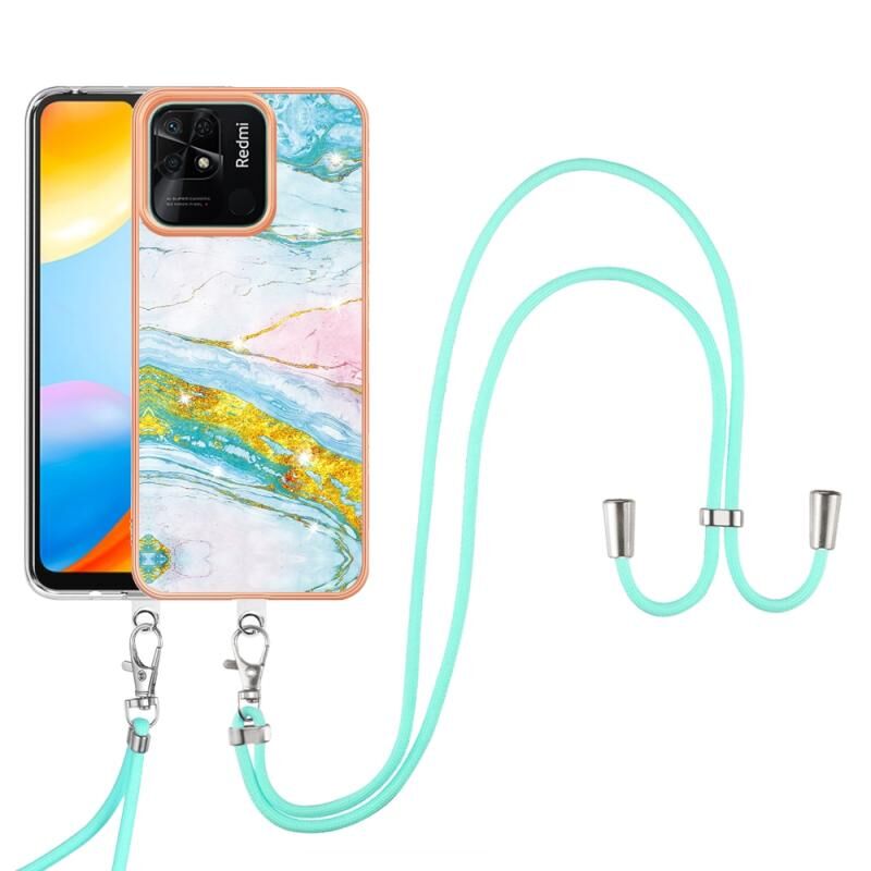 Θήκη τηλεφώνου Xiaomi Redmi 10C με γαλβανισμό, σχέδιο μάρμαρου, διπλής όψης IMD με κορδόνι (Πράσινο 004)