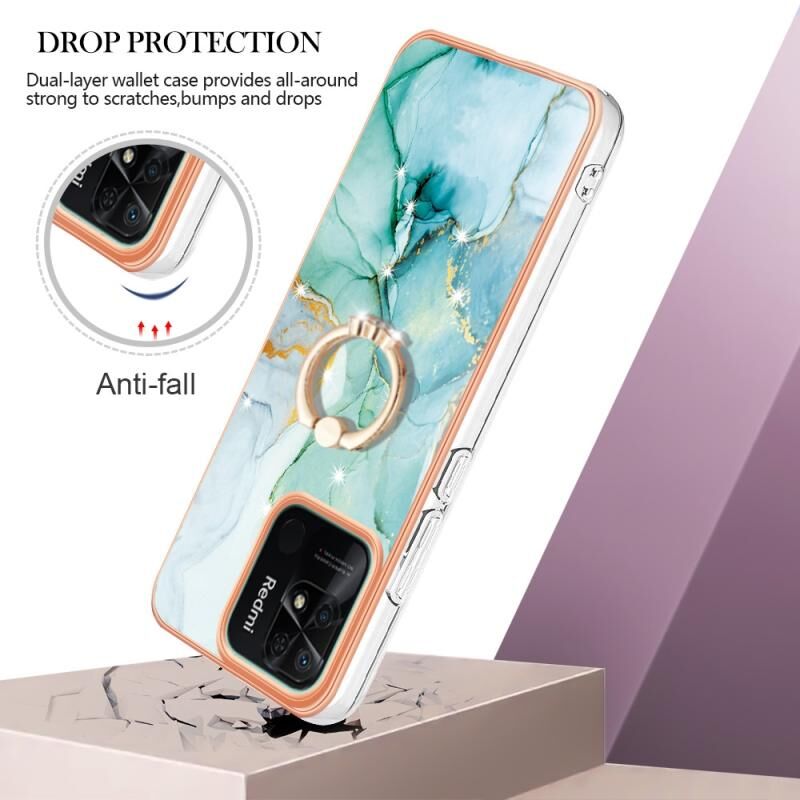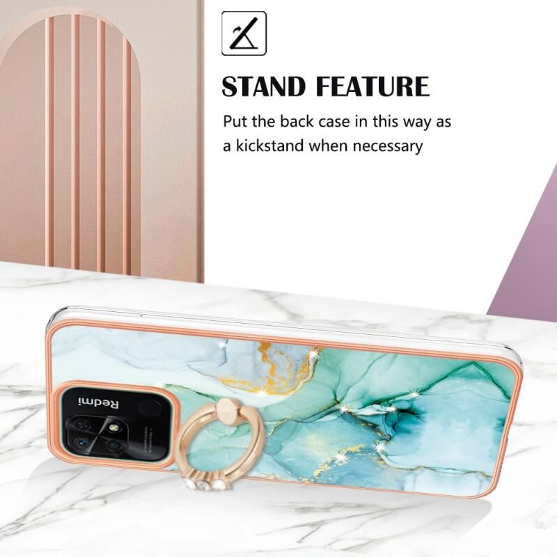 Θήκη κινητού τηλεφώνου Xiaomi Redmi 10C με ηλεκτρολυτική μαρμάρινη επιφάνεια IMD TPU με δακτύλιο στήριξης (Λευκό 006)