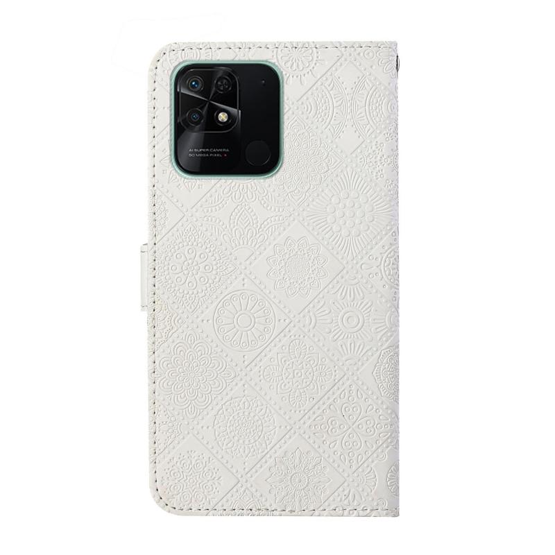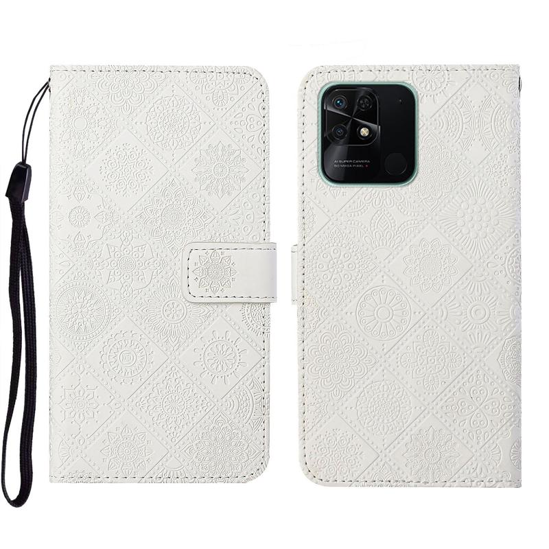 Θήκη τηλεφώνου δερμάτινη με ανάγλυφο σχέδιο εθνοτικού στυλ για Xiaomi Redmi 10C (Μωβ)