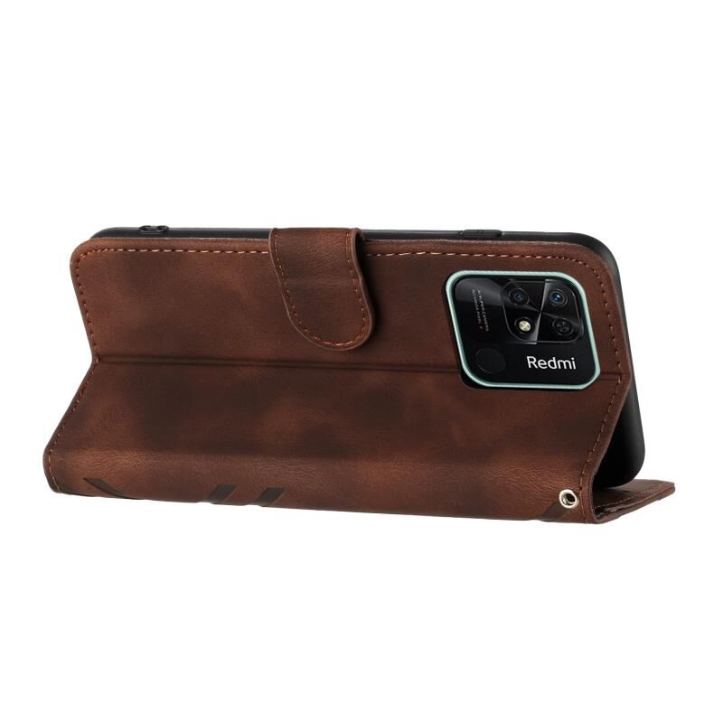 Για Xiaomi Redmi 10C Global/10 Ινδία γραμμή μοτίβο δέρμα αίσθηση δέρμα τηλέφωνο υπόθεση (καφέ)