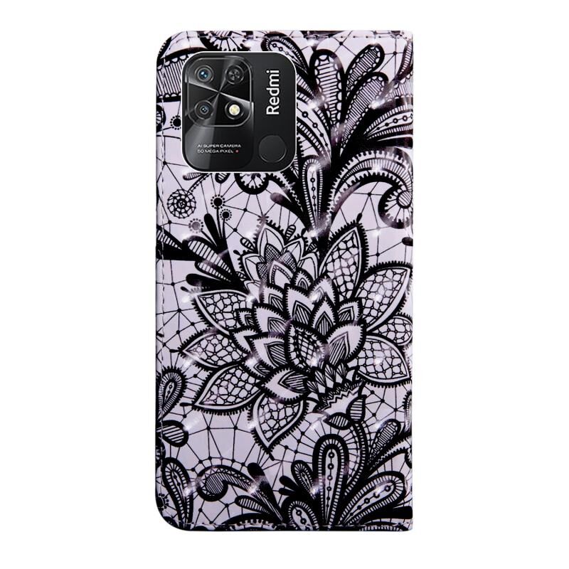 Θήκη τηλεφώνου δερμάτινη με τρισδιάστατο σχέδιο για Xiaomi Redmi 10C Global (Μαύρο Δαντέλα)