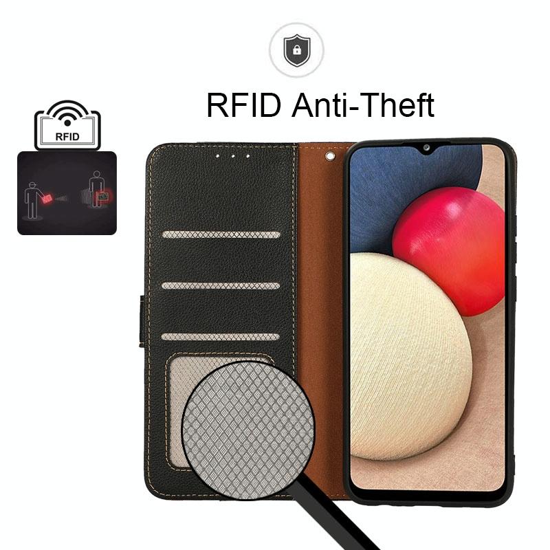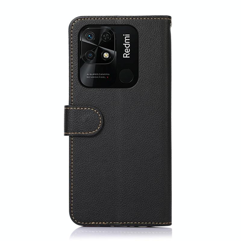 Για Xiaomi Redmi 10C KHAZNEH Δερμάτινη Θήκη με Υφή Litchi & RFID (Μαύρο)