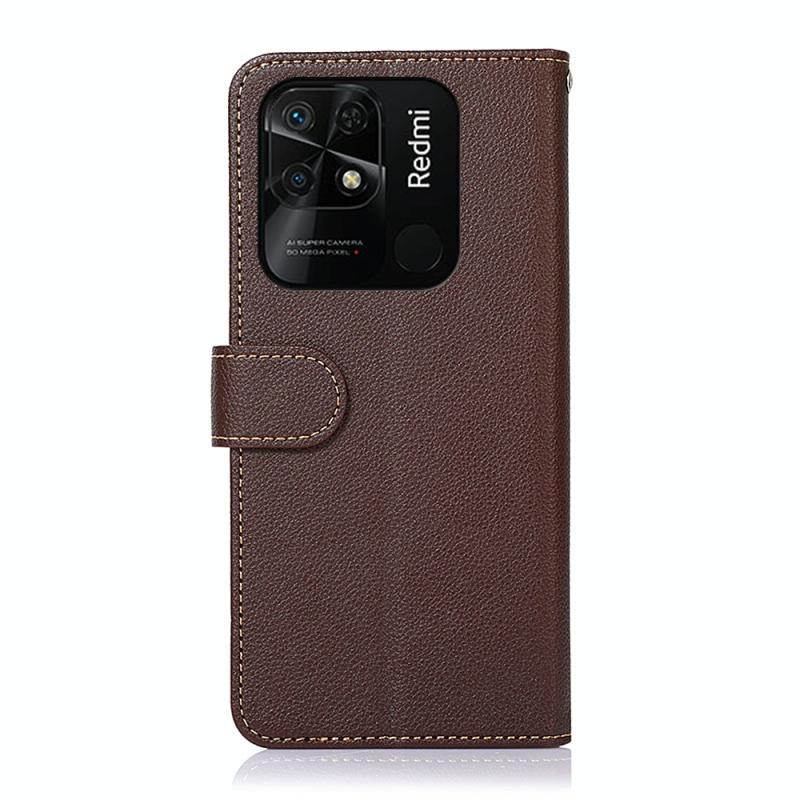 Για Xiaomi Redmi 10C KHAZNEH Δερμάτινη Θήκη με Υφή Litchi & RFID (Καφέ)