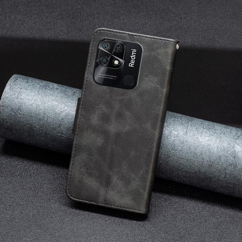 Για Xiaomi Redmi 10C Lambskin Υφή καθαρό χρώμα δερμάτινη θήκη τηλεφώνου (Μαύρο)