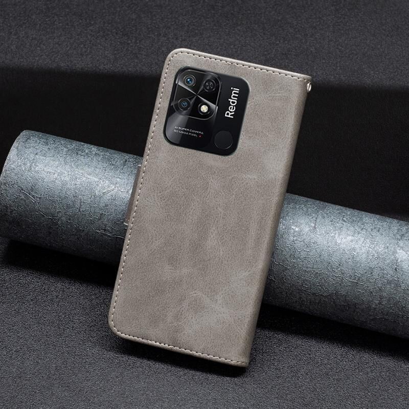 Για Xiaomi Redmi 10C Lambskin Υφή καθαρό χρώμα δερμάτινη θήκη τηλεφώνου (Γκρι)