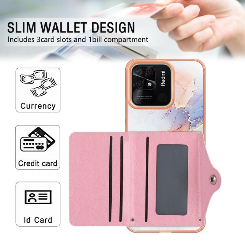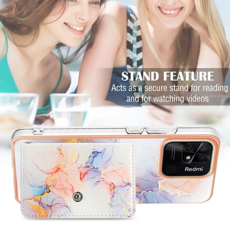 Θήκη κινητού τηλεφώνου με θήκη κάρτας IMD με σχέδιο μαρμάρου για Xiaomi Redmi 10C (Λευκό Γαλαξιακό Μάρμαρο)
