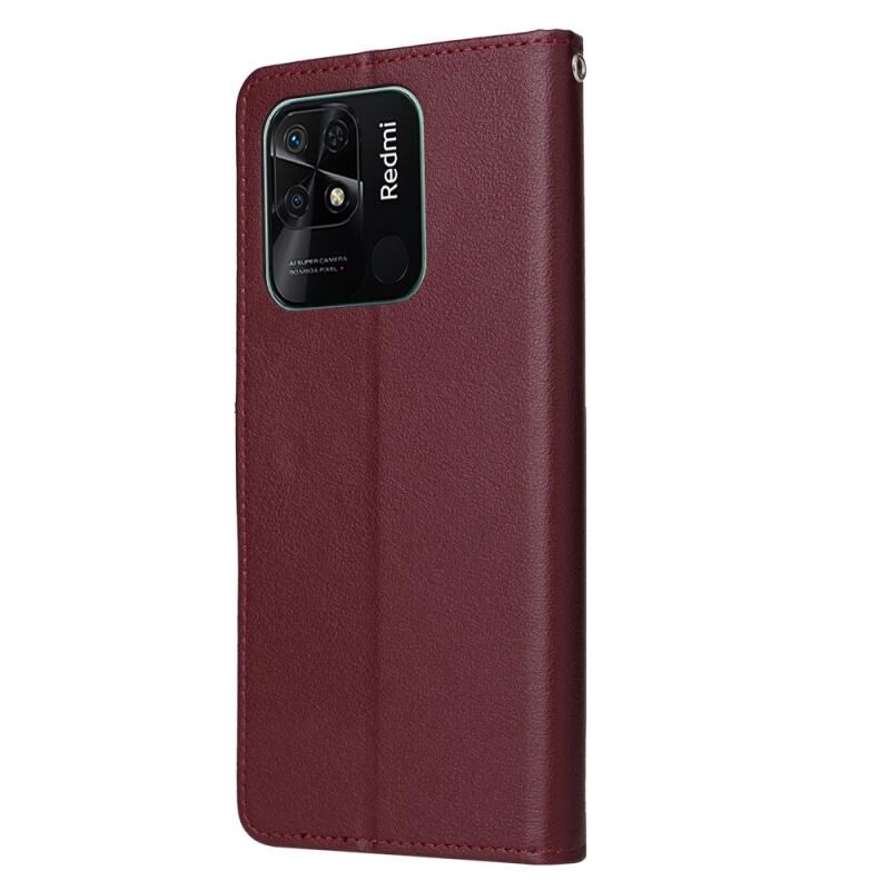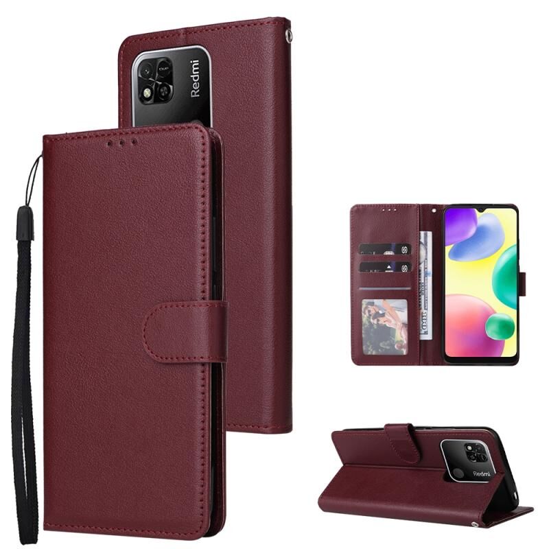 Για Xiaomi Redmi 10C Πολυλειτουργική οριζόντια Flip δερμάτινη θήκη με τρεις υποδοχές καρτών (Κρασοκόκκινο)
