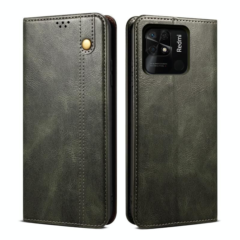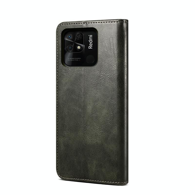 Θήκη δερμάτινη για Xiaomi Redmi 10C με υφή Oil Wax Crazy Horse (Πράσινο)