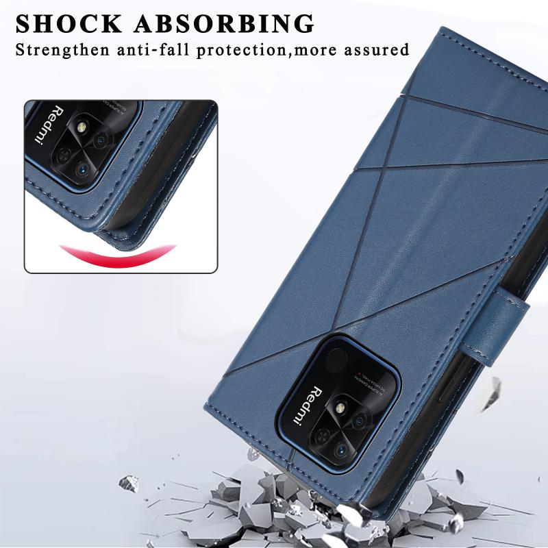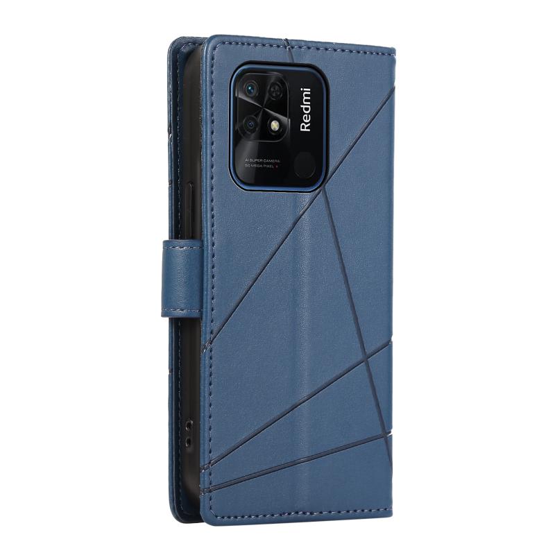 For Xiaomi Redmi 10C PU Genuine Leather Texture Embossed Line Phone Case(Blue)
