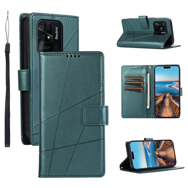 Θήκη τηλεφώνου για Xiaomi Redmi 10C από γνήσιο δέρμα PU με ανάγλυφη υφή και γραμμές (πράσινο)