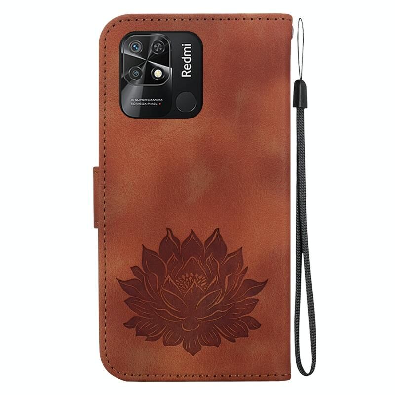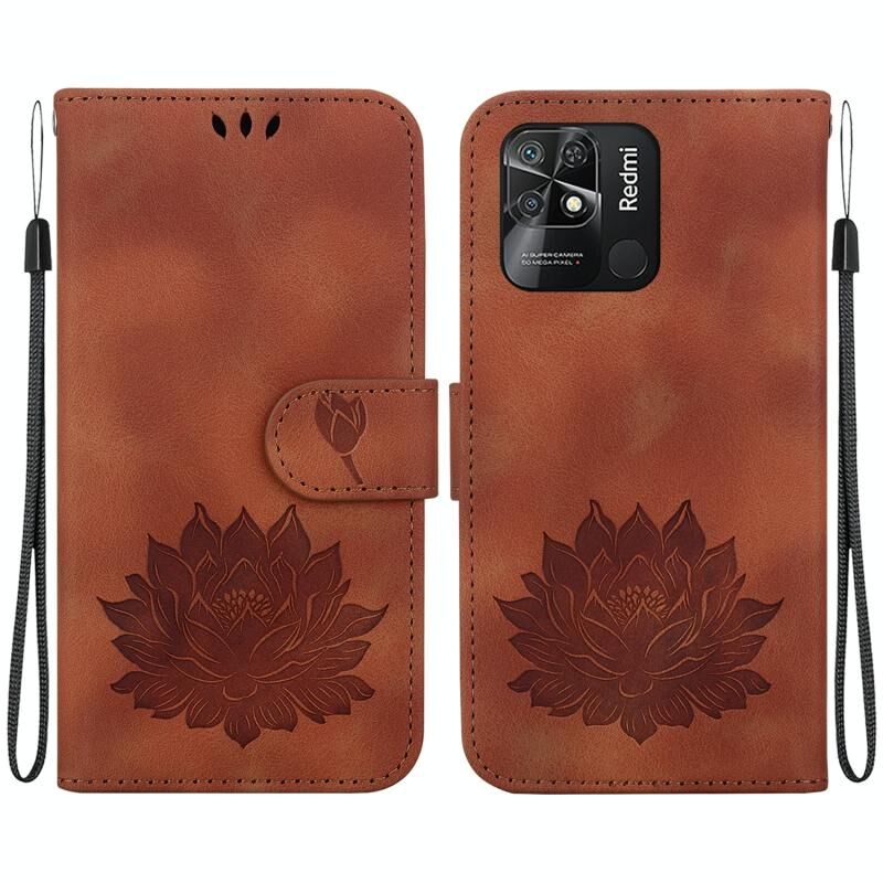 Για Xiaomi Redmi 10C / Redmi 10 Ινδία Lotus ανάγλυφη δερμάτινη θήκη τηλεφώνου (καφέ)