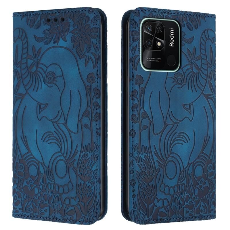 Θήκη τηλεφώνου δερμάτινη με ανάγλυφο σχέδιο ρετρό ελέφαντα για Xiaomi Redmi 10C (Μπλε)