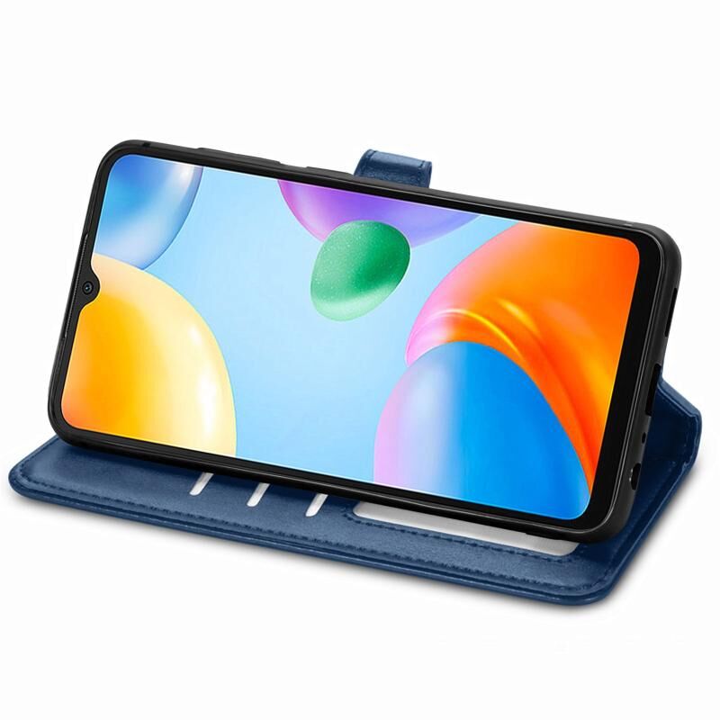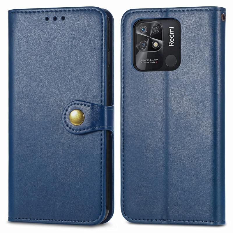Για Xiaomi Redmi 10C Ρετρό στερεό χρώμα πόρπη δερμάτινη θήκη τηλεφώνου (μπλε)