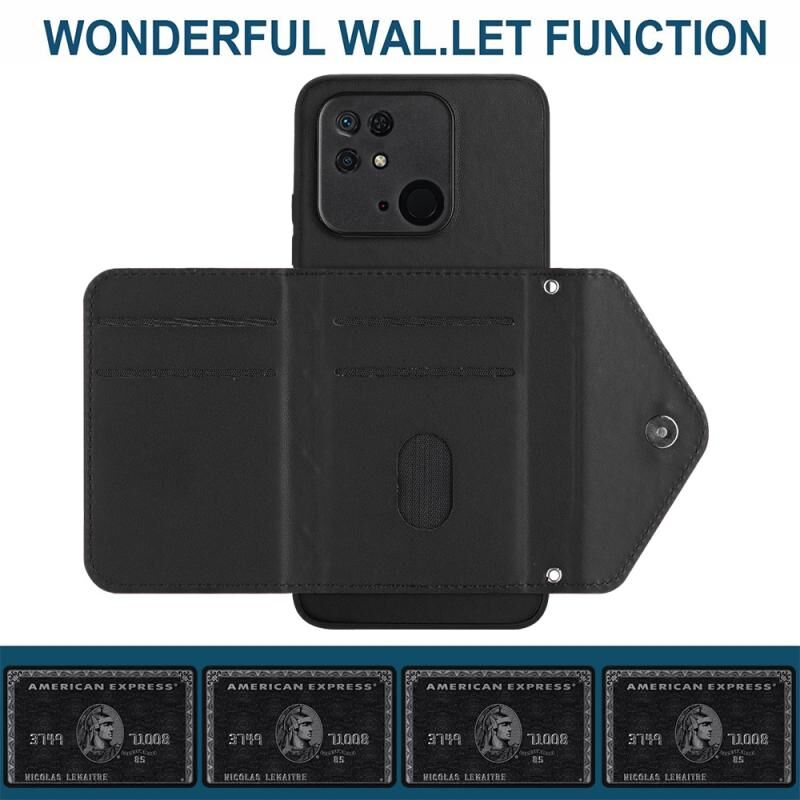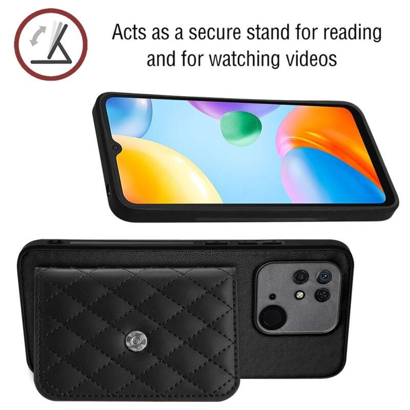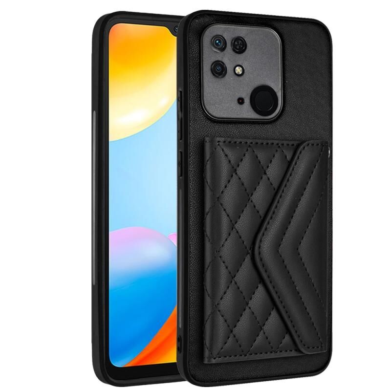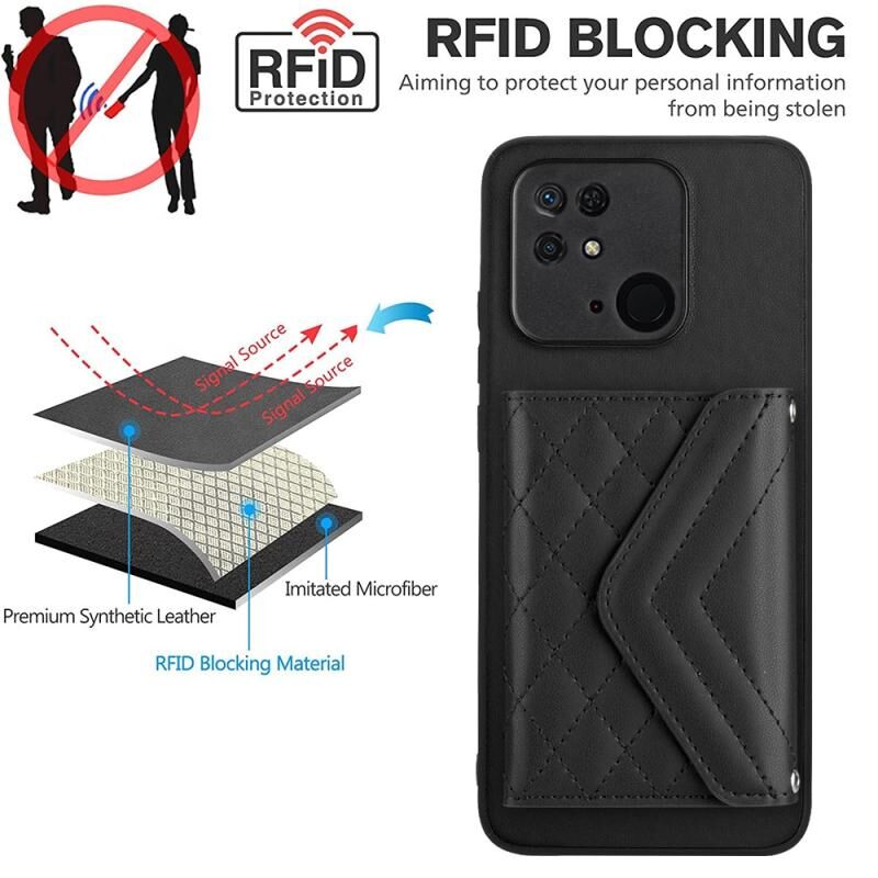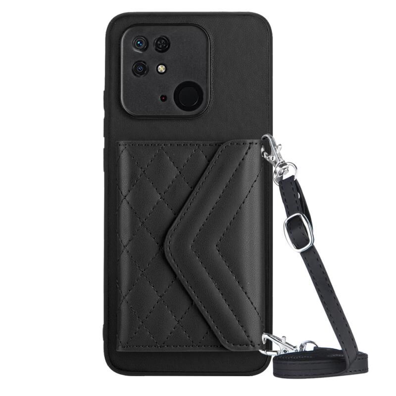 Για Xiaomi Redmi 10C Rhombic υφή κάρτα τσάντα RFID υπόθεση τηλεφώνου με μακρύ κορδόνι (Μαύρο)
