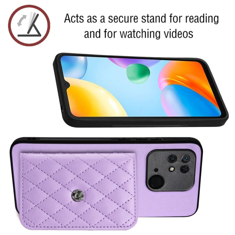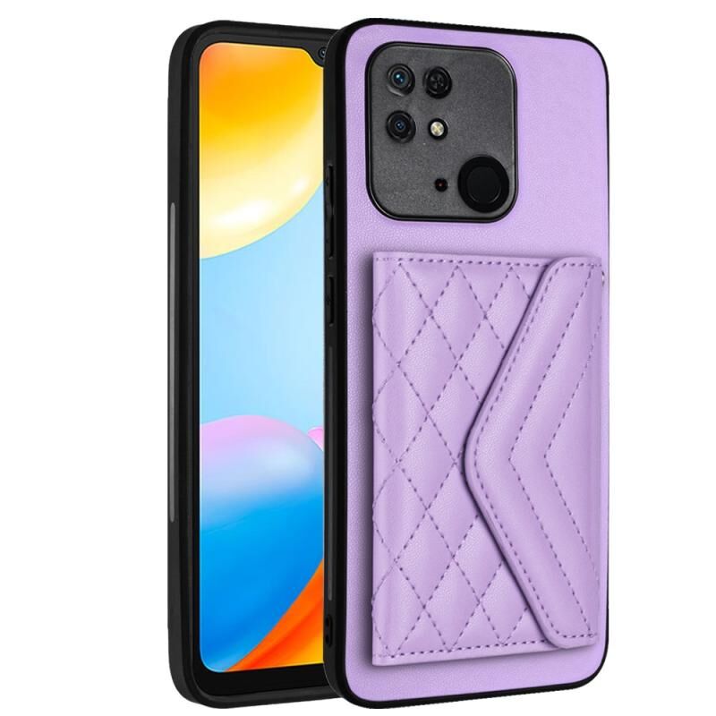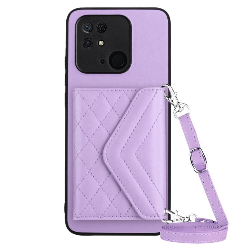 Για Xiaomi Redmi 10C Rhombic υφή κάρτα τσάντα RFID υπόθεση τηλεφώνου με μακρύ κορδόνι (Light Purple)