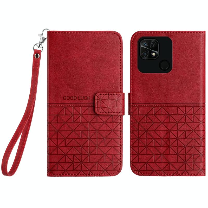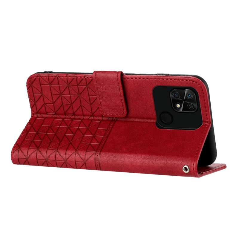 Θήκη δερμάτινη με κορδόνι για Xiaomi Redmi 10C - Ρομβωτό σχέδιο (Κόκκινο)