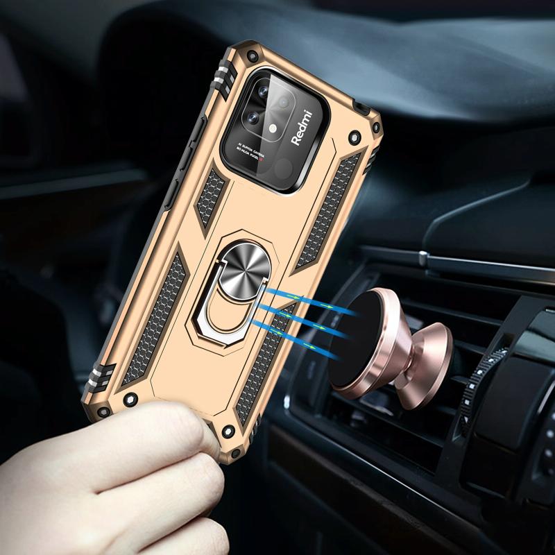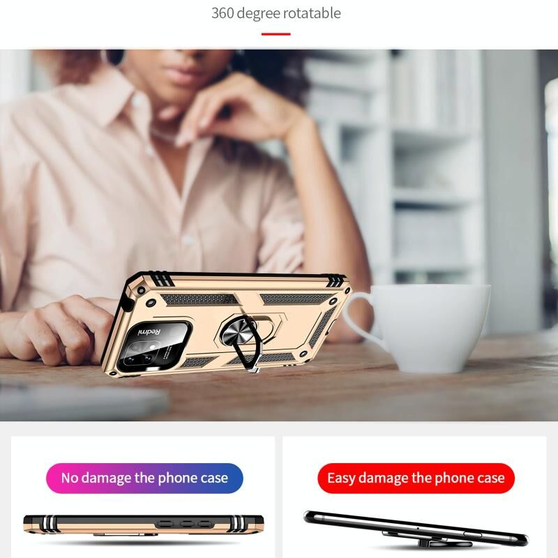 Θήκη κινητού για Xiaomi Redmi 10C ανθεκτική στις κρούσεις, από TPU + PC με περιστρεφόμενη βάση 360 μοιρών (Χρυσός)
