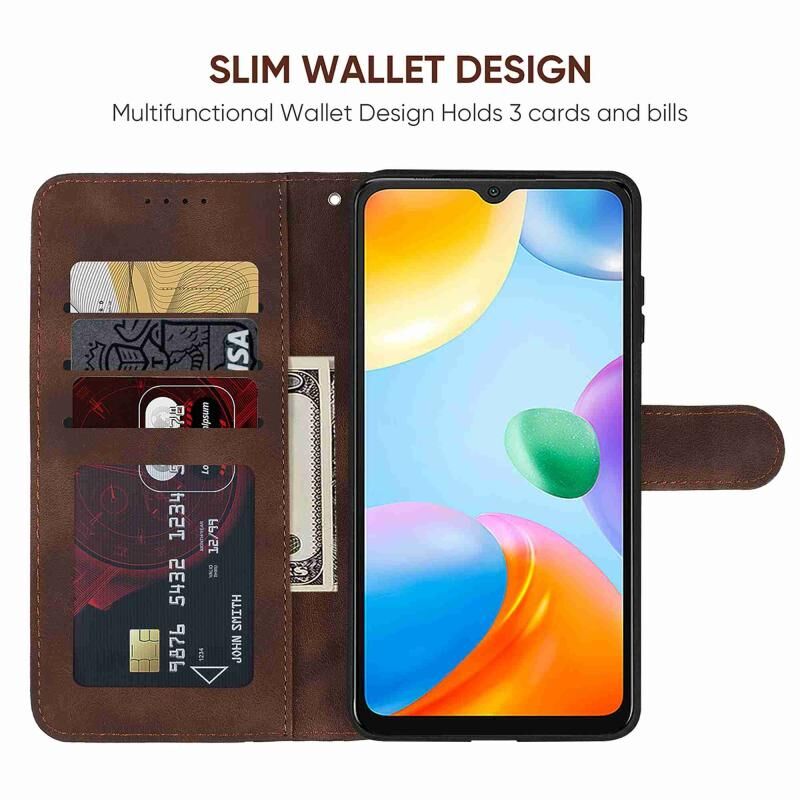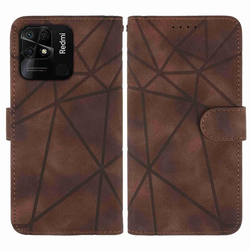 Για Xiaomi Redmi 10C Skin Feel γεωμετρικές γραμμές δερμάτινη θήκη τηλεφώνου (καφέ)