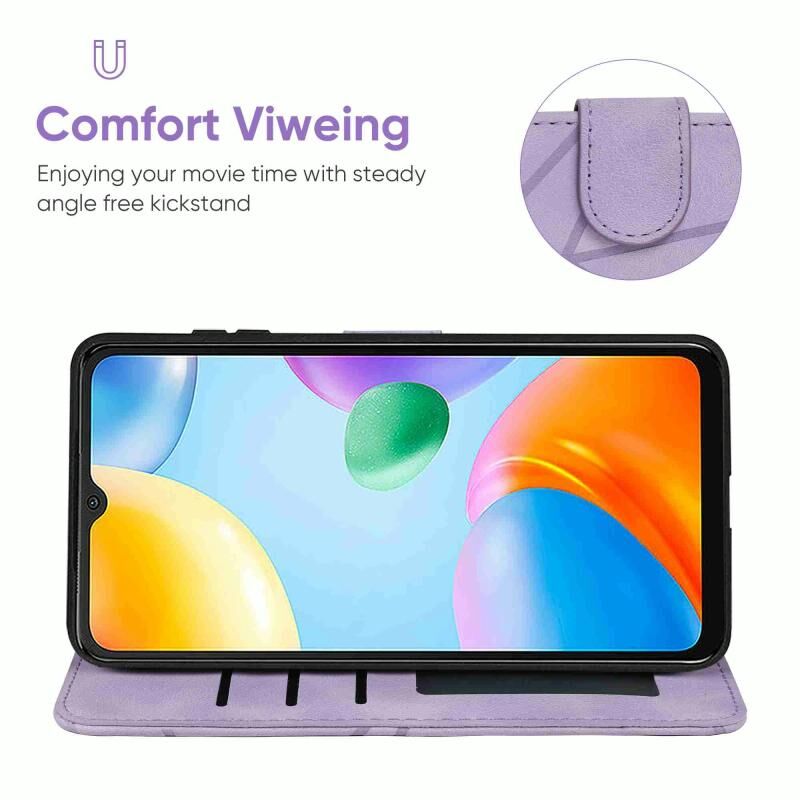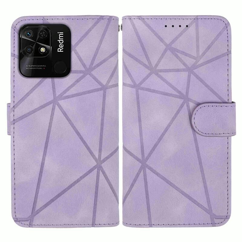 Για Xiaomi Redmi 10C Skin Feel γεωμετρικές γραμμές δερμάτινη θήκη τηλεφώνου (μωβ)