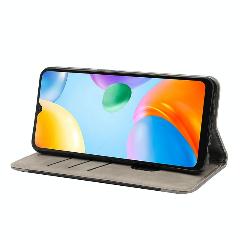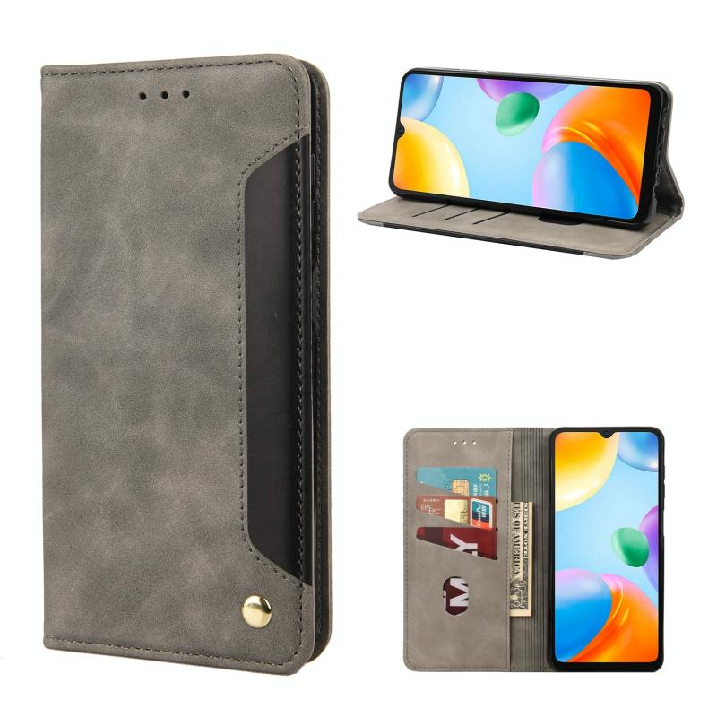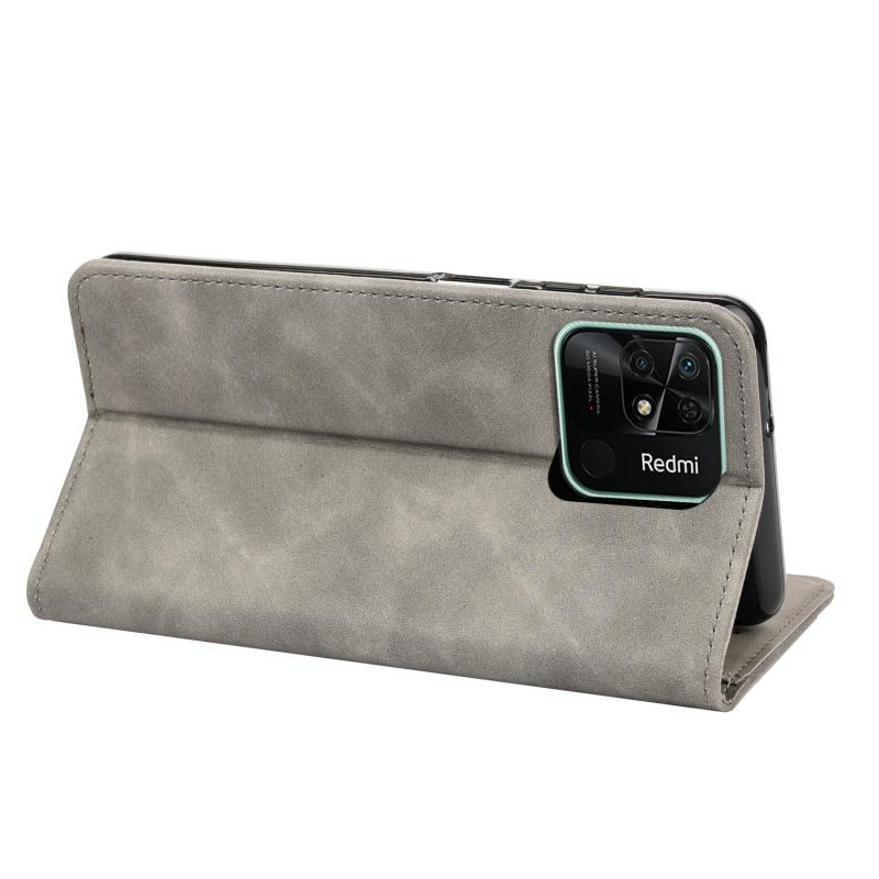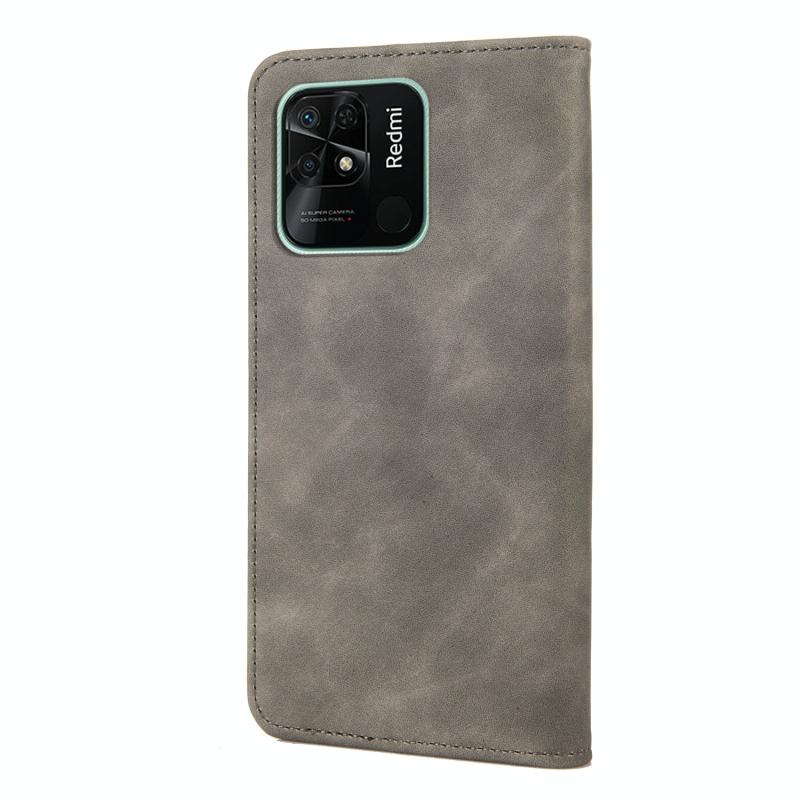 Θήκη δερμάτινη για Xiaomi Redmi 10C με υφή δέρματος και ραφές. (Γκρι)