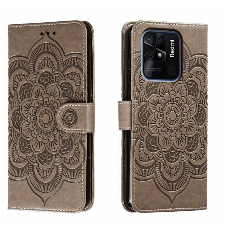 Για Xiaomi Redmi 10C Sun Mandala ανάγλυφο μοτίβο τηλέφωνο δερμάτινη θήκη (γκρι)