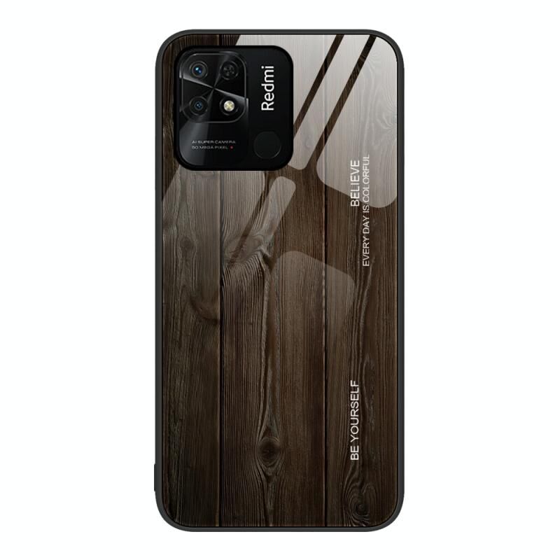 Θήκη Προστασίας από Γυαλί με Υφή Ξύλου για Xiaomi Redmi 10C (Μαύρο)