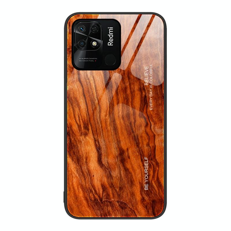 Θήκη Προστασίας από Γυαλί με Υφή Ξύλου για Xiaomi Redmi 10C (Ανοιχτό καφέ)