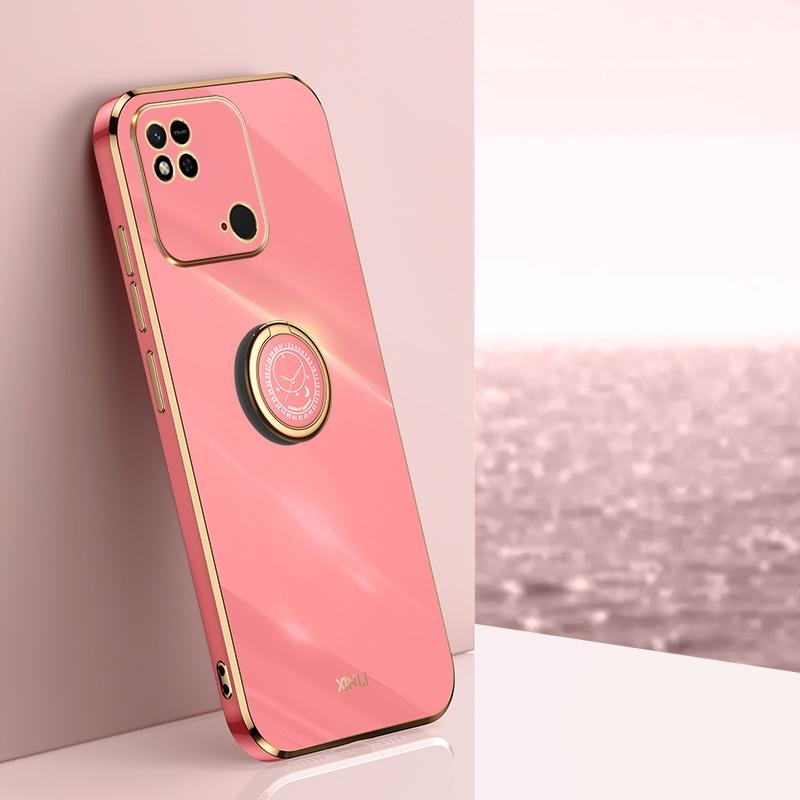 Θήκη κινητού τηλεφώνου Xiaomi Redmi 10C XINLI με ευθείες άκρες, 6D επιμετάλλωση TPU με δακτύλιο στήριξης (Κόκκινο της αγριομηλιάς)