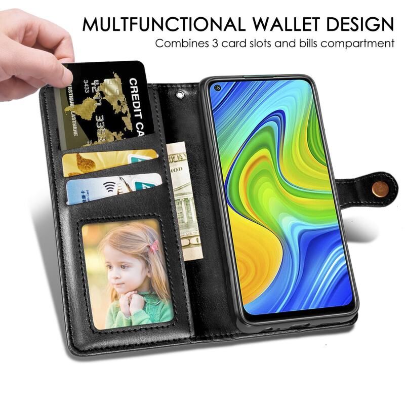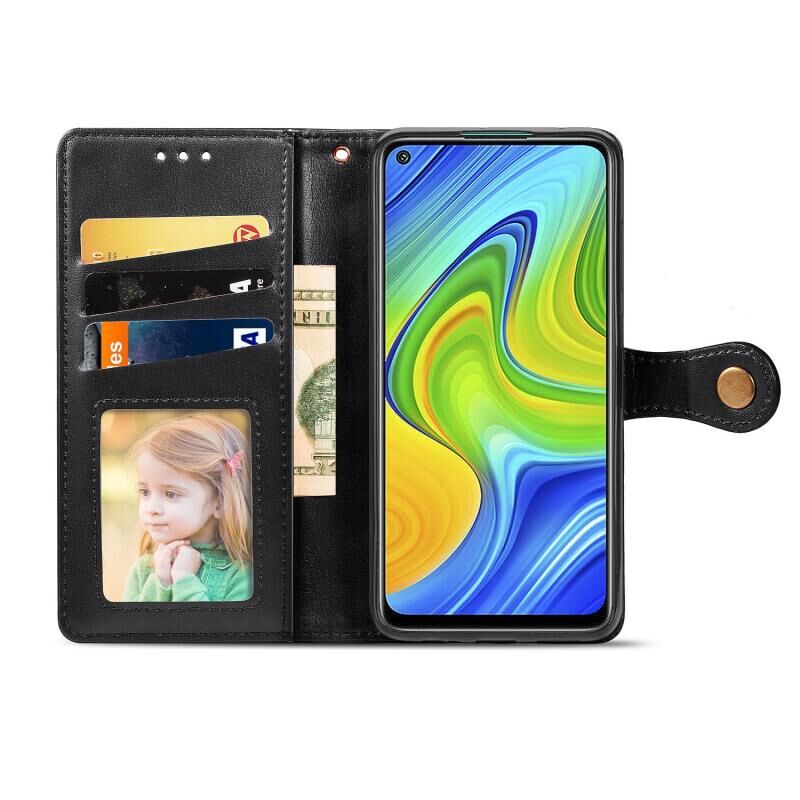 Για Xiaomi Redmi 10X 4G / Redmi Note 9 Ρετρό στερεό χρώμα δέρμα αγκράφα τηλέφωνο υπόθεση με κορδόνι & πλαίσιο φωτογραφιών & υποδοχή κάρτας & πορτοφόλι & Stand λειτουργία (Μαύρο)