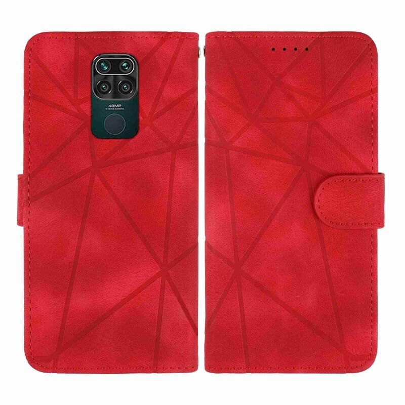 Για Xiaomi Redmi 10X 4G Skin Feel γεωμετρικές γραμμές δερμάτινη θήκη τηλεφώνου (Κόκκινο)