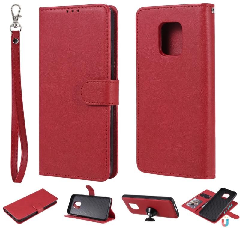 Για Xiaomi Redmi 10X 5G / 10X Pro 5G 2 σε 1 Αμιγές χρώμα Αποσπώμενη PU δερμάτινη θήκη με υποδοχές καρτών & μαγνητική θήκη & κορνίζα φωτογραφιών & πορτοφόλι & λουράκι (Κόκκινο)